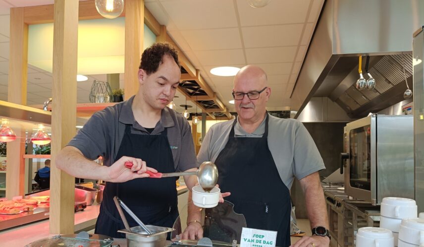 Zo help ik Christopher bij het opscheppen van soep. Ik zorg ervoor dat hij zijn vingers niet brandt. En bij het snijden in de keuken, probeer ik te voorkomen dat hij zichzelf bezeert. Christopher is echt een maatje van me geworden. We beginnen elkaar steeds beter te begrijpen en maken veel grapjes. Dat maakt het samenwerken erg fijn.